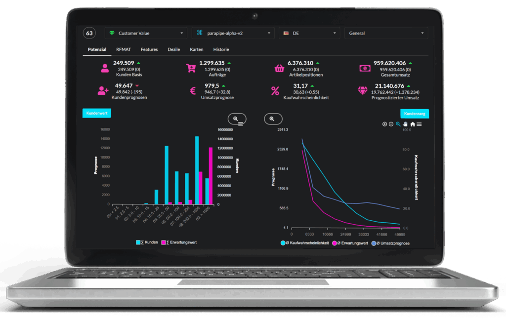 ParaPipe prognostiziert mit Hilfe von KI den zukünftigen Customer Lifetime Value – noch bevor der Kunde aktiv wird. So priorisieren Sie Ihre wertvollsten Leads und investieren gezielt in nachhaltige Kundenbeziehungen.