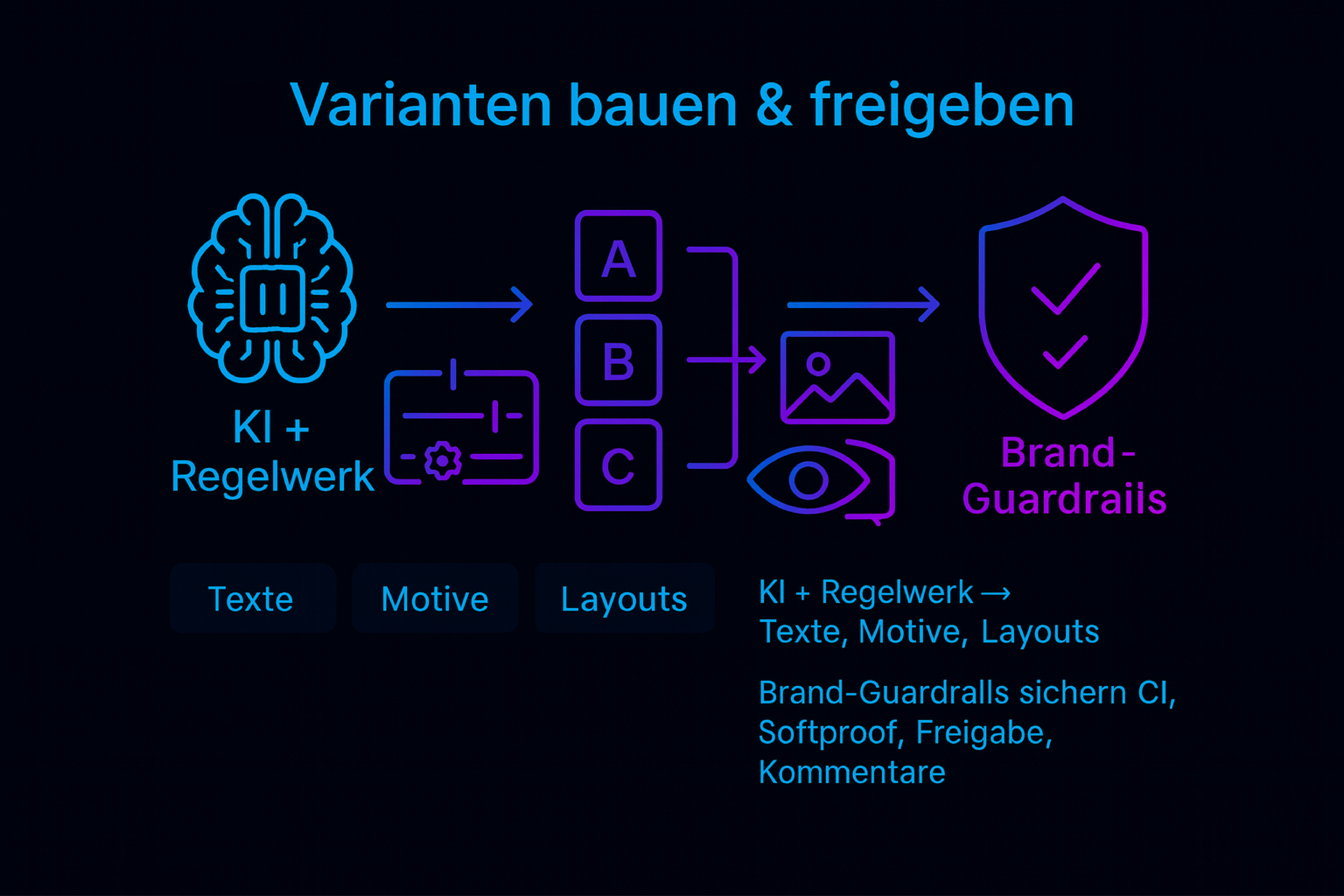 Kurz gesagt: Sie liefern den kreativen Rahmen, wir sorgen für die skalierbare Umsetzung – individuell, markentreu und vollautomatisiert.